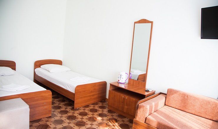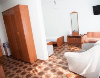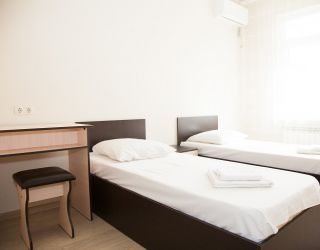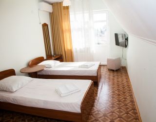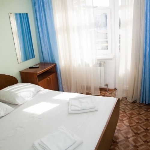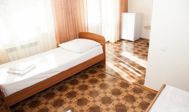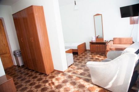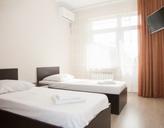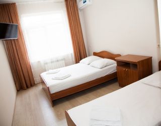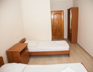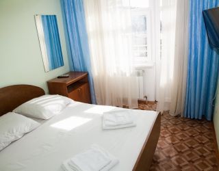 Четырехэтажный корпус без лифта разместился в тихом и спокойном районе на закрытой территории. Двух-трехместные номера различных категории с собственным санузлом оборудованы кондиционером, холодильником и телевизором, в некоторых из них есть балкон. Гости могут выбрать комнаты с отдельными или с двуспальными кроватями.